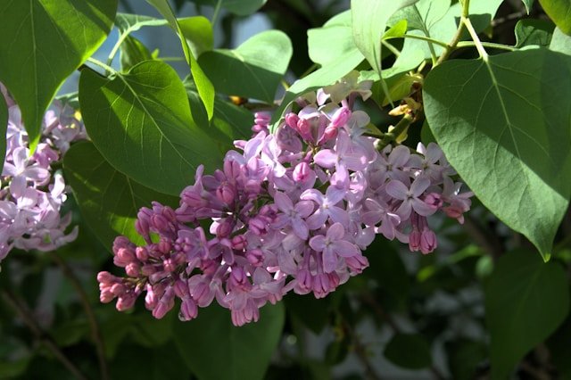 그리고 수수꽃다리는 꽃송이가 작고 가지런하게 펴서 전체적으로 단정한 인상을 주는데요. 라일락은 꽃이 풍성하고 넓게 퍼지면서 좀 더 화려한 느낌을 줍니다. 잎을 보면 수수꽃다리는 뾰족한 하트 모양의 좁은 잎을 가지고 있고 라일락은 잎이 크고 둥글어 좀 더 부드러운 인상을 남깁니다.